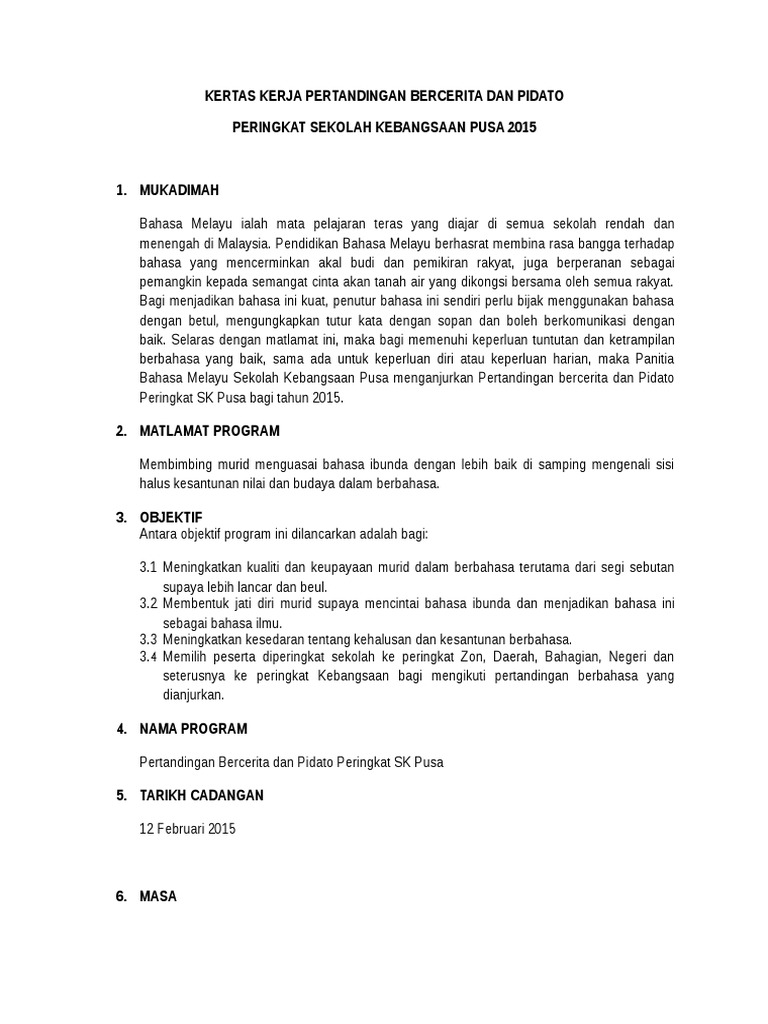 Contoh Kertas Kerja Pertandingan Bercerita Sekolah Rendah
